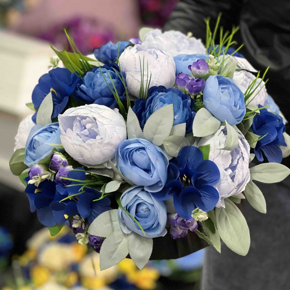Искусственный материал премиум качества сохранит внешний вид цветочной композиции на долгое время.