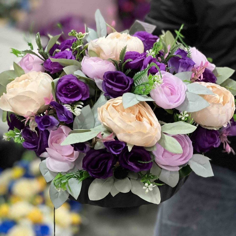 Искусственный материал премиум качества сохранит внешний вид цветочной композиции на долгое время.